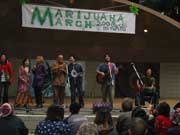 これまでのマーチでは、大きな公園にある野外ステージでライブやパフォーマンス、コスチュームコンテスト、フリースピーチ、大麻問題についてのパネル展示、大麻粥や大麻ソバのサービス、そして宣言文採択などを行ってきました。何をするかは、遊び感覚を生かしつつ、自分たちで決め、自分たちで作っていく非営利の催しです。 |