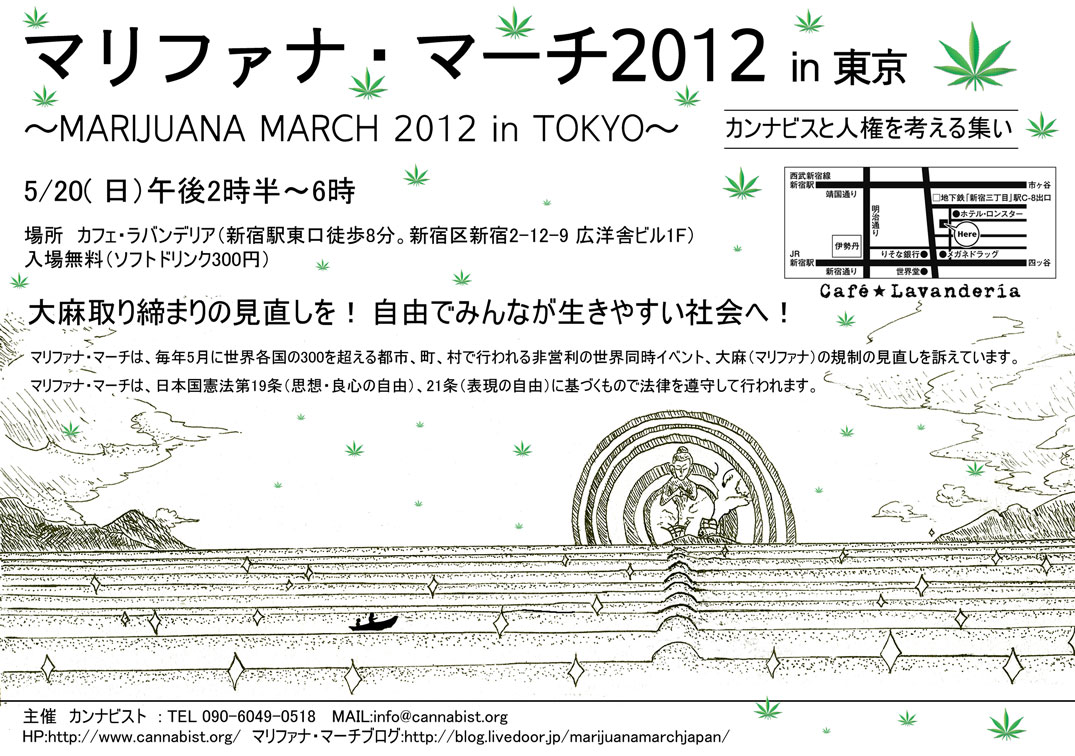 今年は、5月16日早稲田、20日高円寺、21日下北沢でも連動した小集会が開催されています。以下、会場で採択された「マリファナ・マーチ東京宣言 2012」を公表いたします。